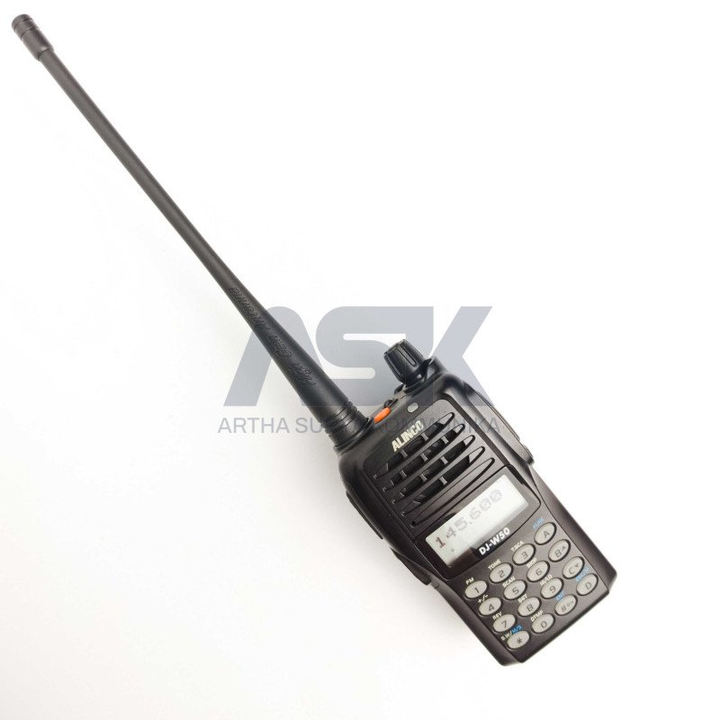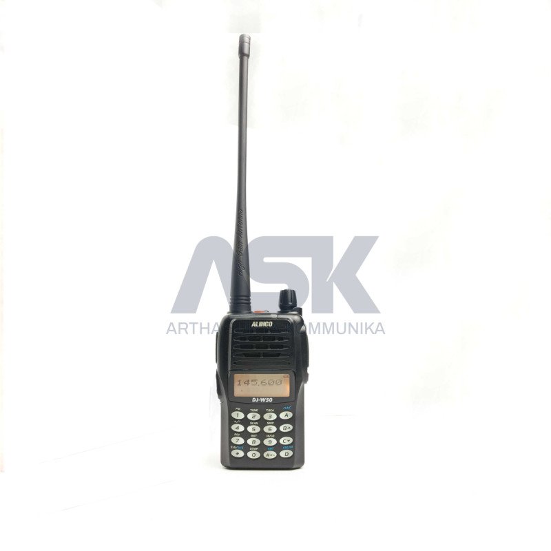 HT ALINCO DJ-W50 DUALBAND 136 & 400 MHZ / DJW50 DJ W50 DJ W 50 Fitur Unggulan - 128 saluran untuk mengatur parameter operasional melalui software utilitas PC.- Mode tampilan saluran, nama tag, dan VFO (frekuensi) yang dapat dipilih.- Dilengkapi baterai Li-Ion isi ulang, pengisian cepat desktop, dan antena whip kinerja tinggi.- Desain ergonomis dengan bentuk kompak.- 3 fungsi scan (VFO/kanal memory/prioritas), 50 CTCSS, 116 DCS, dan 4 suara burst. Spesifikasi Teknis Frekuensi: TX/RX 136-174 MHz / 400-470 MHz (Dualband VHF/UHF). Modulasi: F3E. Saluran programable: 128 saluran. Stabilitas frekuensi: 2.5 ppm. Tegangan operasional: 7.4V. Arus drainase maksimal: 1500mA (TX) / 300mA (RX). Dimensi: 59(W) x 98(H) x 35(D) mm. Berat: 227 g. Suhu operasional: -20C hingga +55C. Layar dan Port LCD dot matrix dengan layar retroaktif dan nama tag alfanumerik. Port mikrofon dan speaker. Receiver sistem: superhetodyne ganda konversi. Sensitivitas: -12dBu. Selektivitas: -6dB: Lebar 12kHz / Rinci 10kHz atau lebih. Output audio: 1W (10% distorsi). Transmitter Output daya: 5W (VHF) / 4W (UHF) / 2W / 0.5W. Sistem modulasi: FM responsif variabel. Emission spesifik: -36dB. Deviasi frekuensi maksimal: 5kHz / 2.5kHz. Termasuk radio FM, VOX internal, Voiceprompt dalam bahasa Inggris, Remote-Kill/Stun/Revive, analog scrambling, Voice compander, Narrow FM, Repeater-reverse, Auto-Power-off, Busy-Channel Lockout, Time-Out-Timer, dll.
